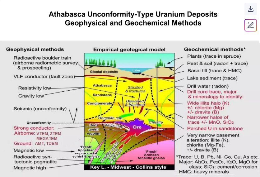 - Athabasca Basin: >1–5% U₃O₈ is extreem hoog; Namibië: vaak 0,02–0,05%.